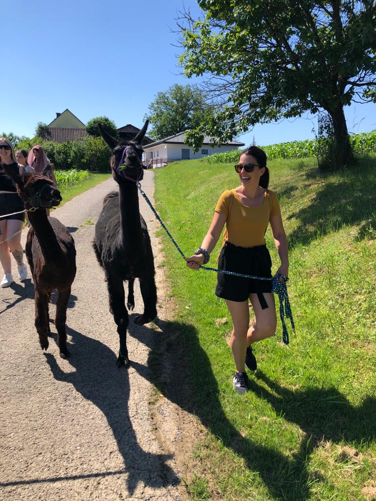 Mit fünf Alpakas und einem Lama sind wir über Wiesen und Felder am Annaberg in Kirchbach-Zerlach gewandert. Die Belohnung für die Wanderung gab es bei einem Picknick auf der Alpakaweide, wo wir mit köstlichem Kuchen von Grete versorgt wurden.