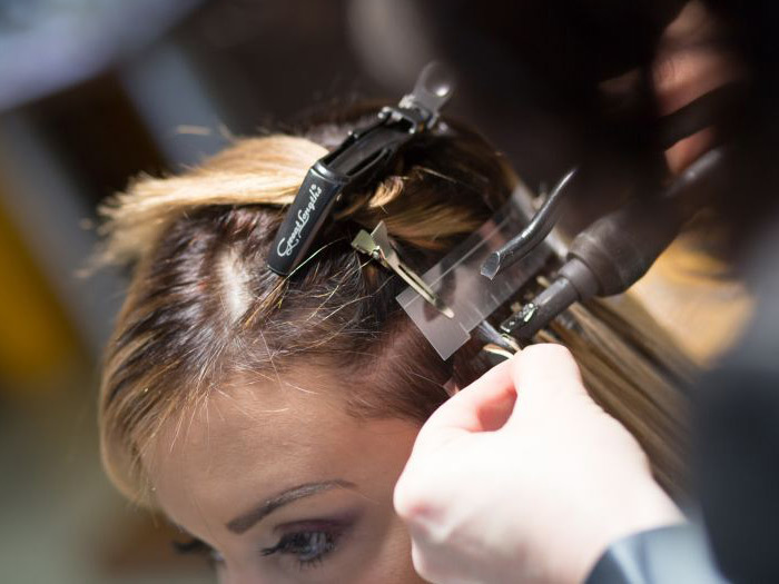 Die Haare einer Kundin waren im Nacken gerade einmal 10 cm lang, an den Seiten 15 cm. Da sie Flugbegleiterin ist, war es ihr Traum, auch mal eine lange Mähne oder einen stylischen Dutt tragen zu können. Aber sie wollte keine vier Jahre auf ihre 40 cm Haarlänge warten.