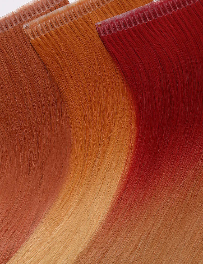 von links nach rechts: Farben Grapefruit/Pink, Mandarine, Blutorange. Länge 40 cm, erhältlich bei unseren Great Lengths Partnern >>